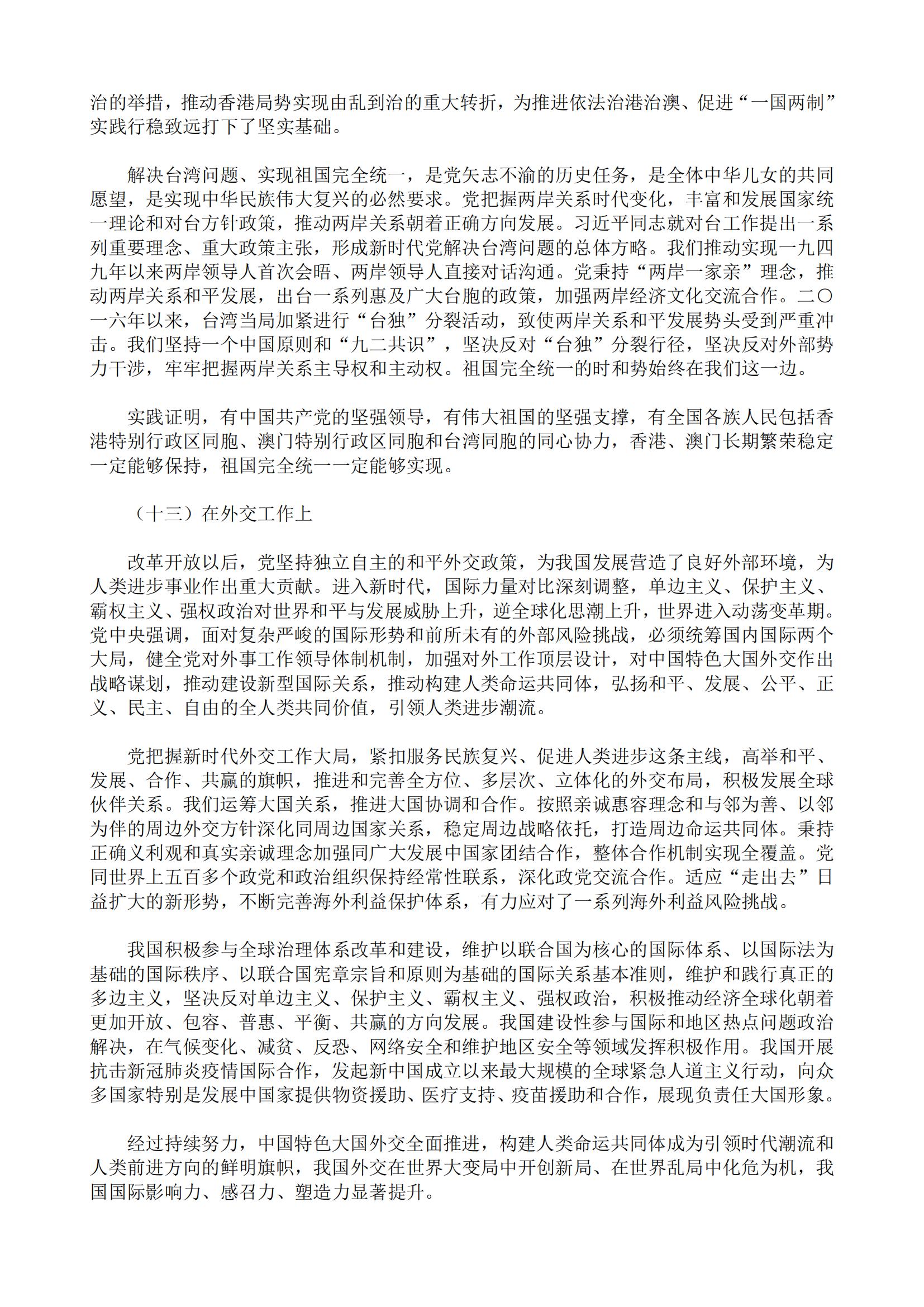 关于《中共中央关于党的百年奋斗重大成就和历史经验的决议》的说明