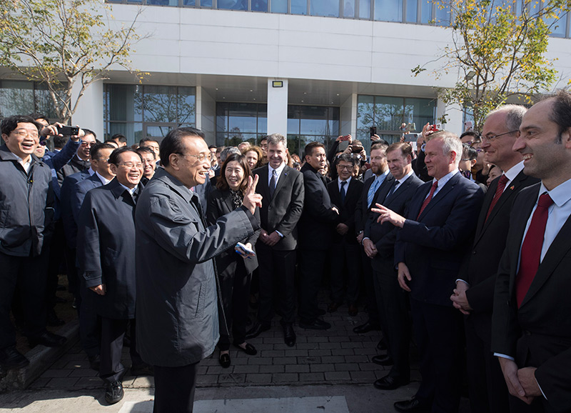 在上海自贸试验区,李克强对这里通过改革开放在投资、贸易、金融等方面形成一系列制度创新成果予以肯定。他说,你们作为全国第一个自贸试验区,要继续先行先试、取得新经验,更好为全国作示范。李克强考察了外高桥国际智能制造服务产业园,了解高端智能设备研发等情况,与多家外资企业负责人交流。他说,近年来我们持续推进“放管服”改革、优化营商环境,投资负面清单越来越短,你们多年在中国发展,应当能感受到。中国对外开放的大门会越开越大,并严格保护知识产权,使更多外资企业放心在华投资兴业。李克强强调,中国企业要面向世界、拓宽视野,在开放中增强竞争力。即将生效的RCEP将形成全球最大自贸区,要用好更大程度贸易投资自由化便利化的机遇,拓展合作共赢空间。