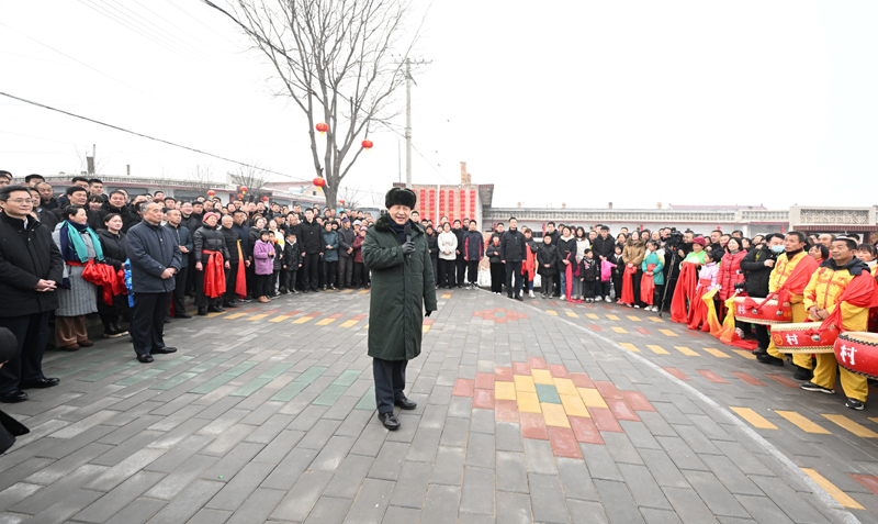 群众。这是26日下午,习近平在临汾市汾西县僧念镇段村文化广场,给乡亲们拜年,向全国各族人民、向港澳台同胞和海外侨胞致以美好的新春祝福。新华社记者 李学仁 摄