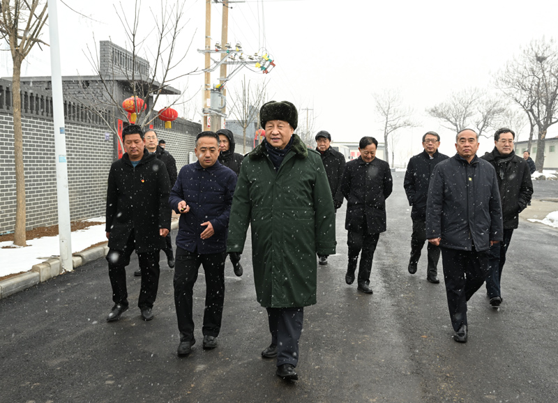 群众。这是26日下午,习近平冒雪在临汾市霍州市师庄乡冯南垣村考察。新华社记者 李学仁 摄