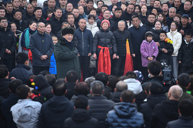 群众。这是26日下午,习近平在临汾市汾西县僧念镇段村文化广场,给乡亲们拜年,向全国各族人民、向港澳台同胞和海外侨胞致以美好的新春祝福。新华社记者 燕雁 摄