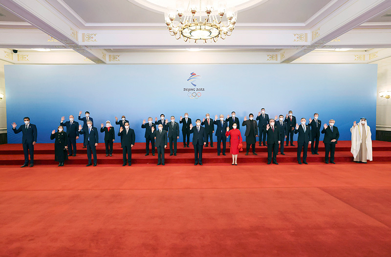 2022年冬奥会开幕式的国际贵宾。这是习近平和彭丽媛同国际贵宾一起合影留念。新华社记者 谢环驰 摄