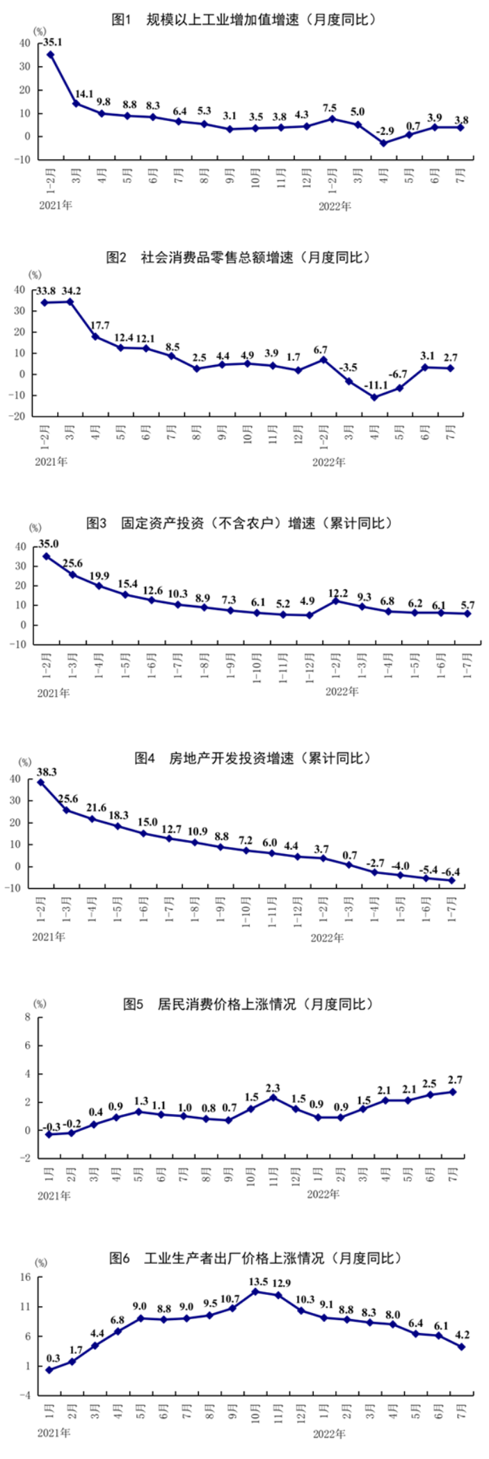 7月份,面对国际环境更趋复杂严峻和国内疫情散发多发的不利局面,在以习近平同志为核心的党中央坚强领导下,各地区各部 门坚持稳中求进工作总基调,认真贯彻落实党中央、国务院决策部署,高效统筹疫情防控和经济社会发展,有力实施稳经济一揽子政策措施,生产供给继续恢复,就业物价总体平稳,对外贸 易增势良好,民生保障有力有效,经济延续恢复态势。