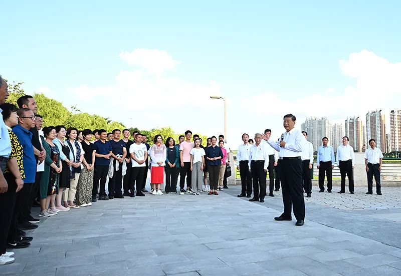 东湖文化广场上,正在休闲、进行文化活动的群众看到总书记来了,纷纷向总书记问好。习近平亲切地对大家说,中国式现