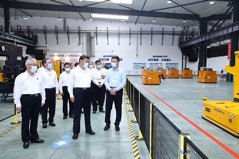 日下午,习近平在沈阳新松机器人自动化股份有限公司生产车间考察。新华社记者 鞠鹏 摄