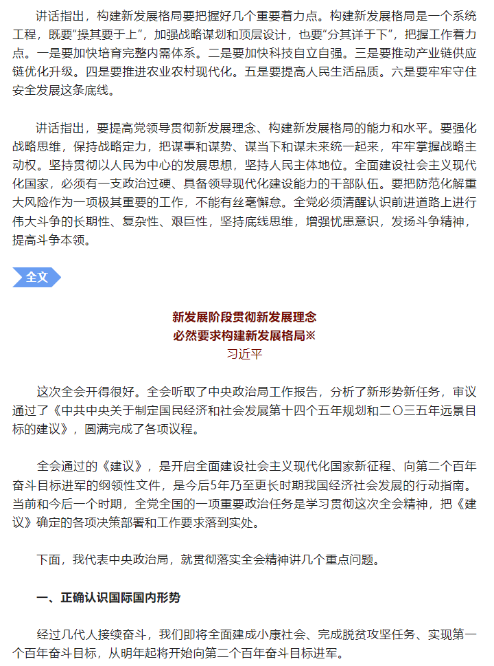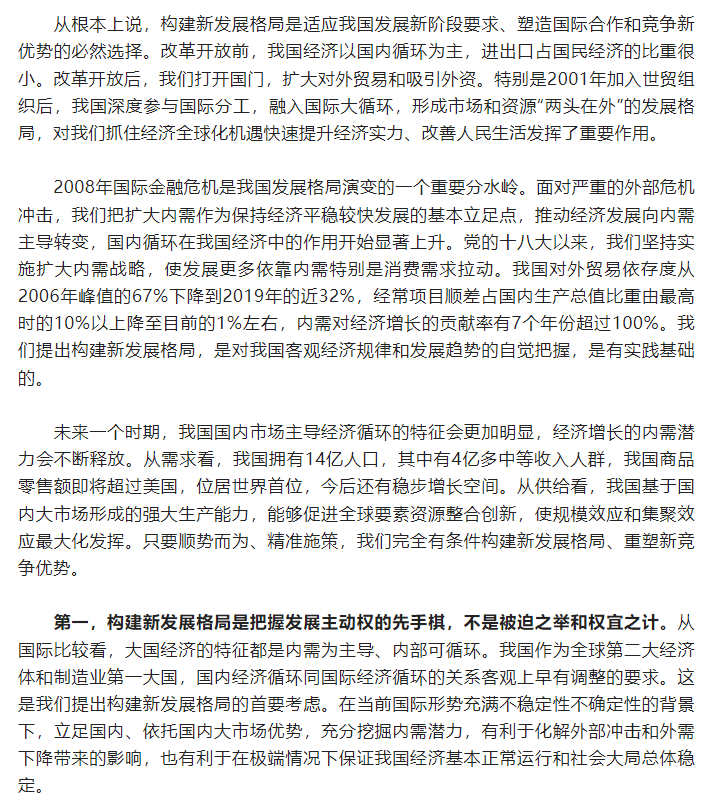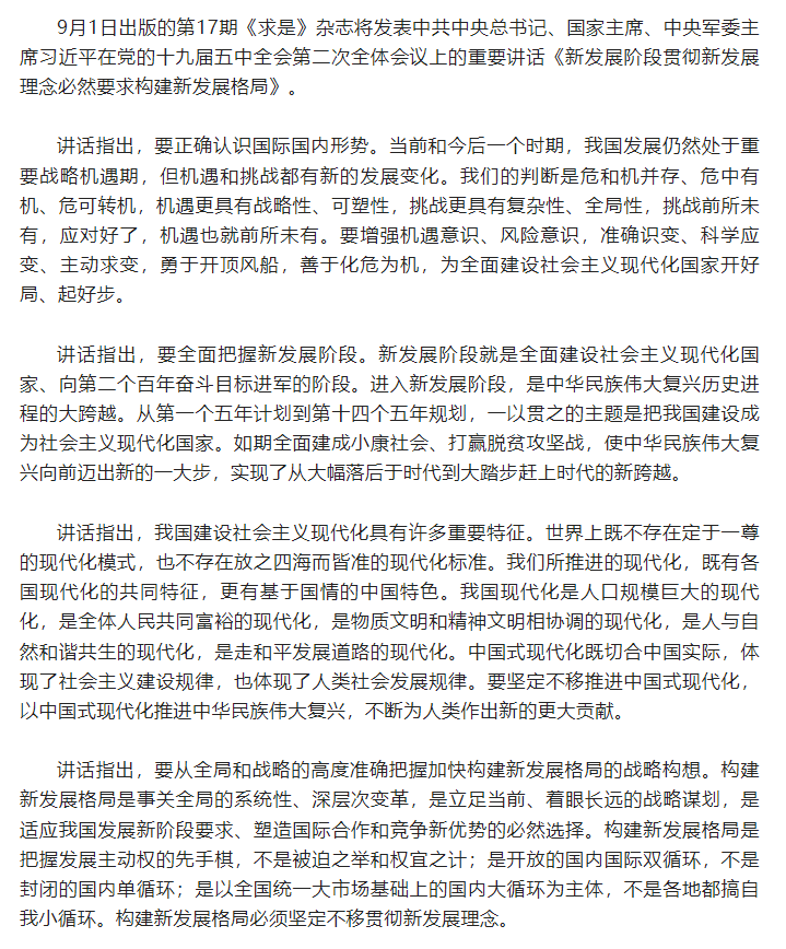 — 《求是》杂志发表习近平总书记重要讲话《新发展阶段贯彻新发展理念必然要求构建新发展格局》