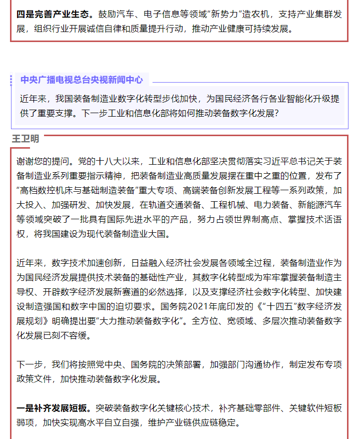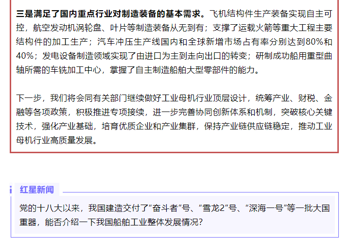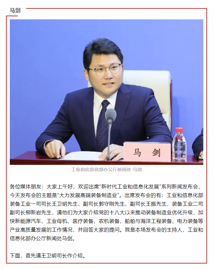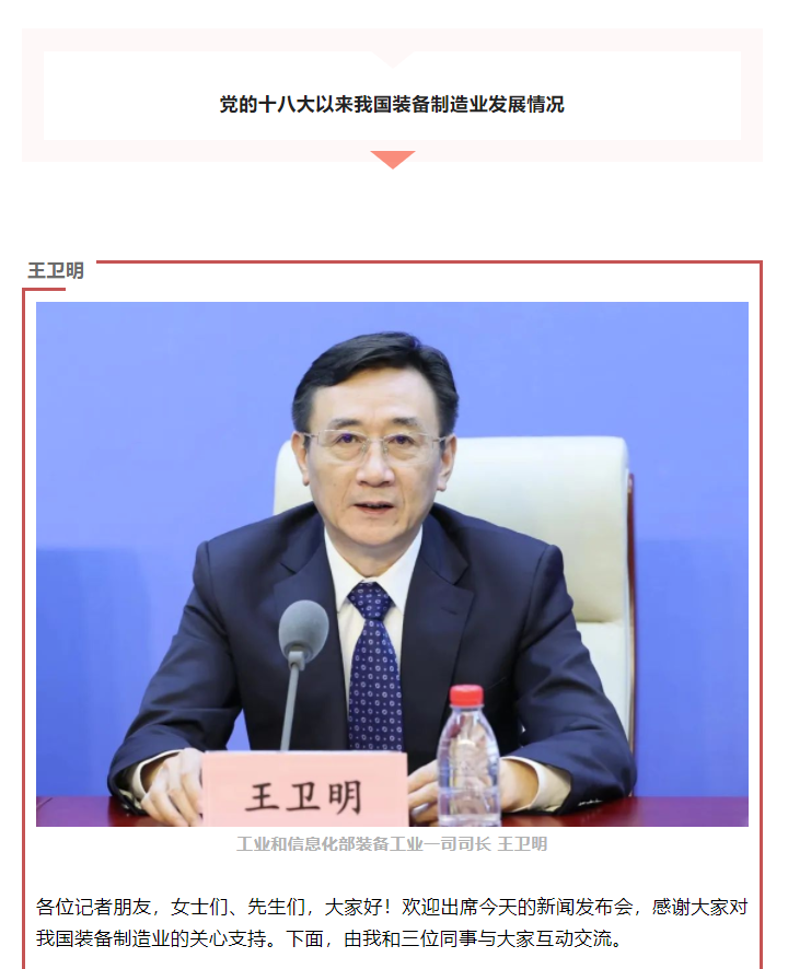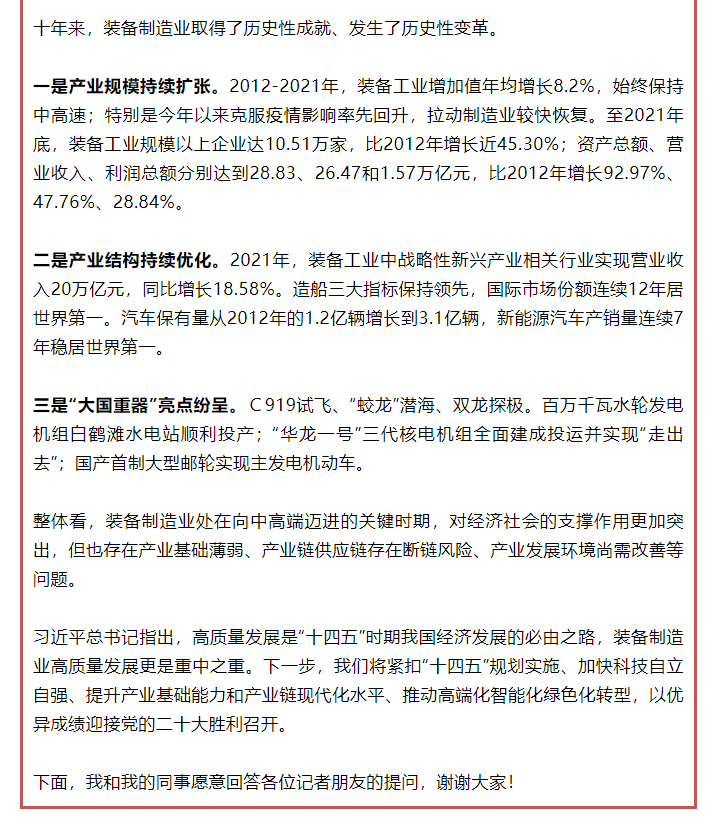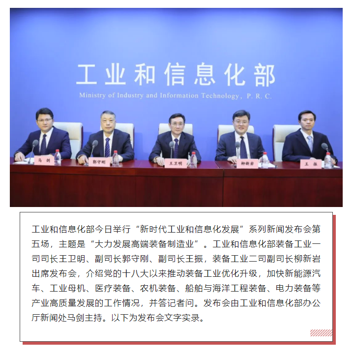 — 大力发展高端装备制造业!“新时代工业和信息化发展”系列新闻发布会第五场介绍十年来推动装备制造业高质量发展工作情况