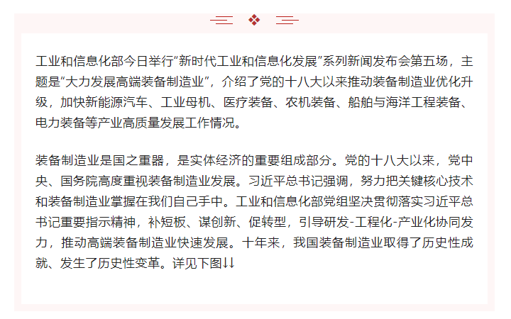— 一图读懂十年来我国推动装备制造业高质量发展工作情况