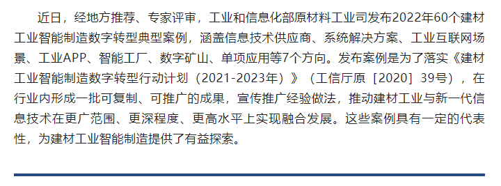 — 工信部发布60个建材工业智能制造数字转型典型案例