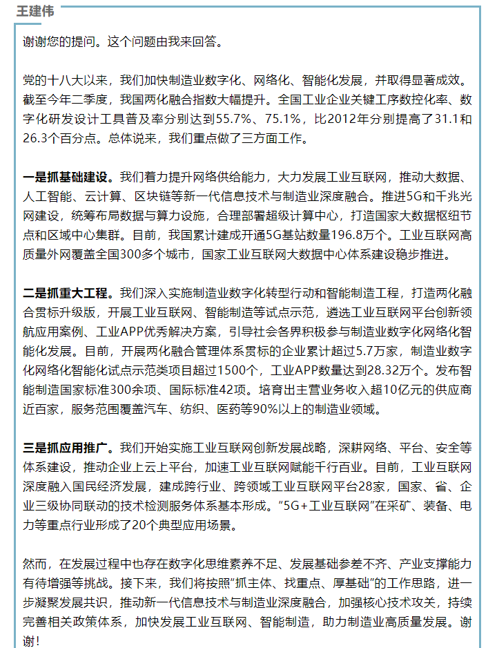 — 加快制造业数字化网络化智能化发展!“新时代工业和信息化发展”系列新闻发布会第六场实录来了