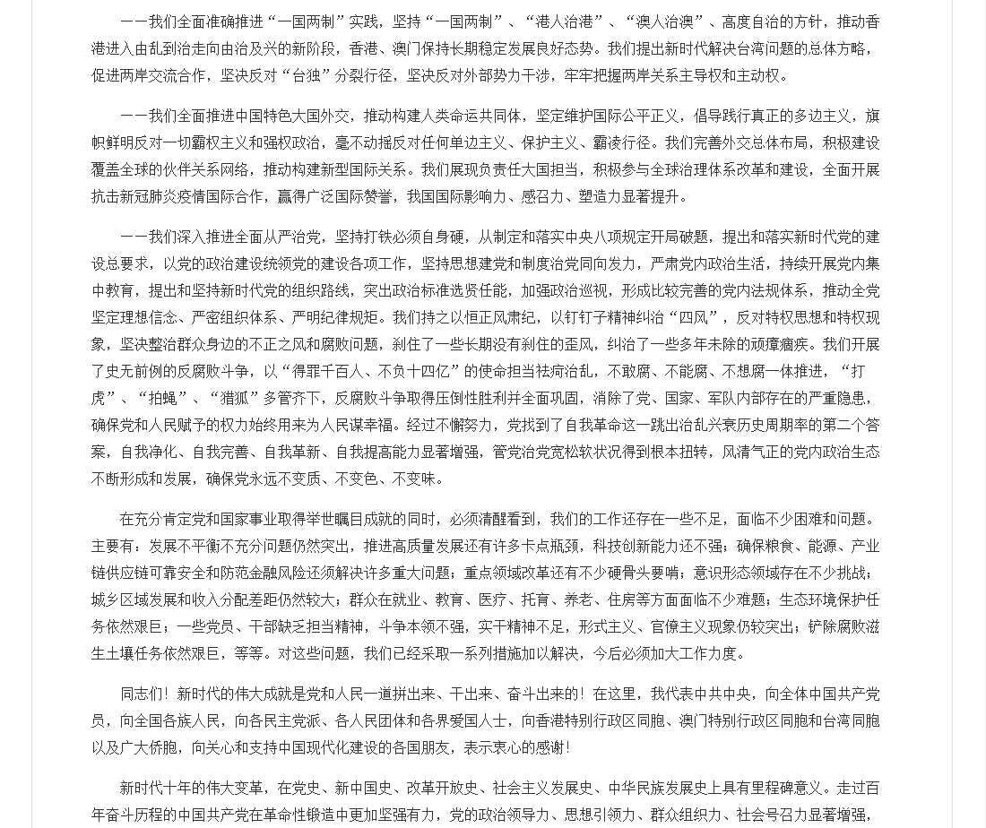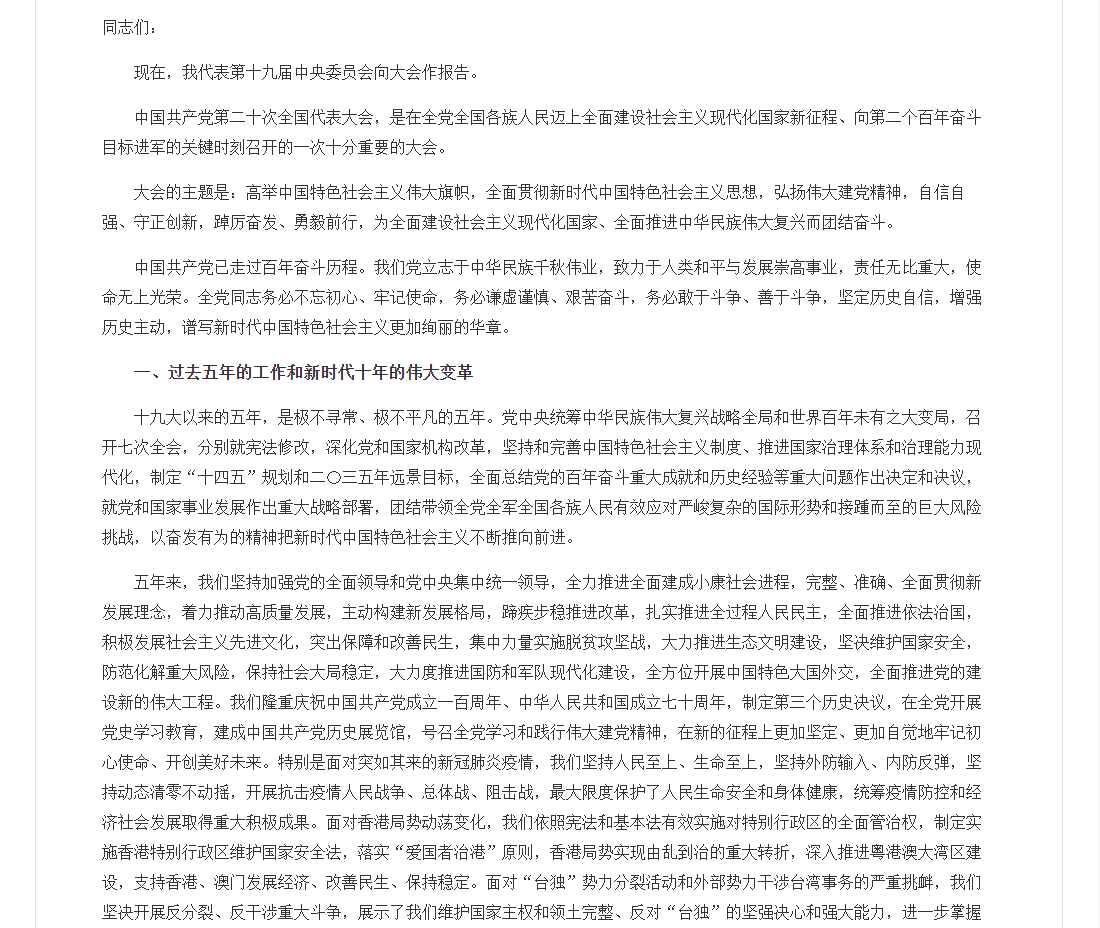 10月16日,习近平在中国共产党第二十次全国代表大会上作报告。新华社记者 饶爱民 摄