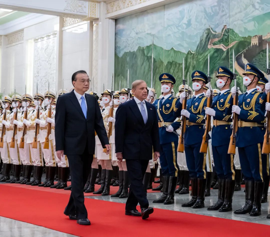 堂同来华进行正式访问的巴基斯坦总理夏巴兹举行会谈。这是会谈前,李克强在人民大会堂北大厅为夏巴兹举行欢迎仪式。新华社记者 翟健岚 摄