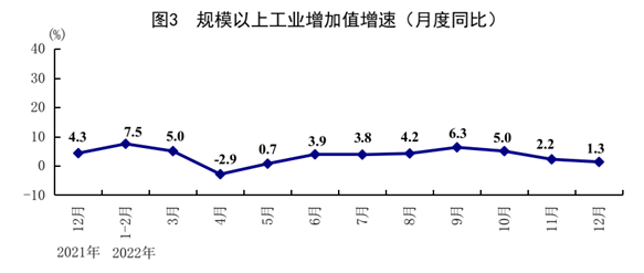 。12月份,规模以上工业增加值同比增长1.3%,环比增长0.06%。1-11月份,全国规模以上工业企业实现利润总额77180亿元,同比下降3.6%。