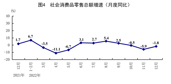 119642亿元,增长6.2%,占社会消费品零售总额的比重为27.2%。12月份,社会消费品零售总额同比下降1.8%,降幅比上月收窄4.1个百分点;环比下降0.14%。