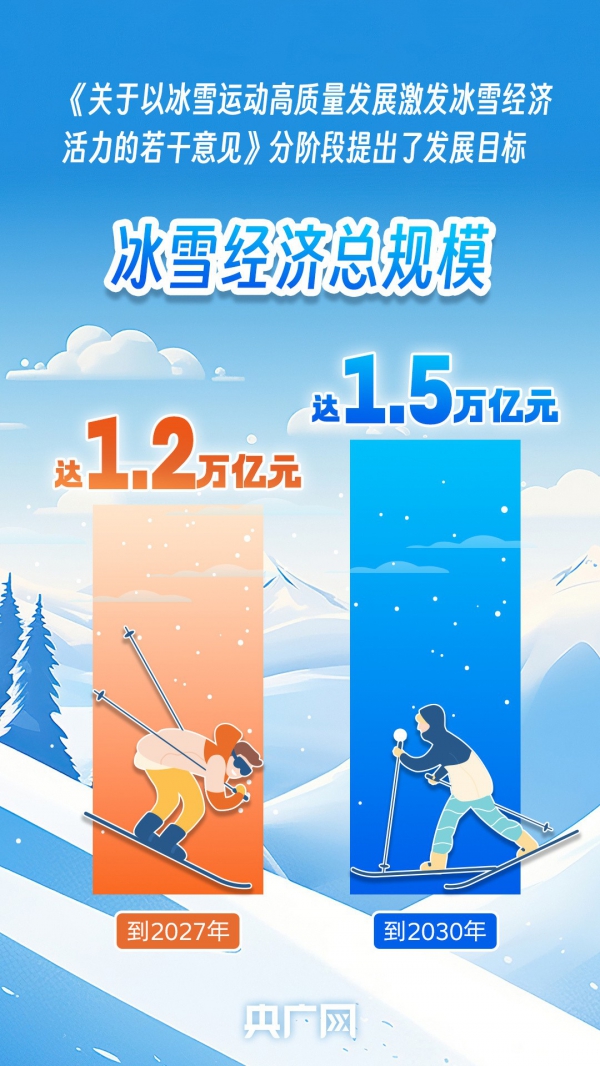 近日,国务院办公厅公开发布《关于以冰雪运动高质量发展激发冰雪经济活力的若干意见》(以下简称《意见》),分阶段提出发展目标:到2027年,冰雪运动场地设施更加完善,服务水平显著提升,冰雪运动更加广泛开展,冰雪经济总规模达1.2万亿元。到2030年,冰雪经济主要产业链条实现高水平协调融合发展,冰雪消费成为扩大内需的重要增长点,冰雪经济总规模达1.5万亿元。
