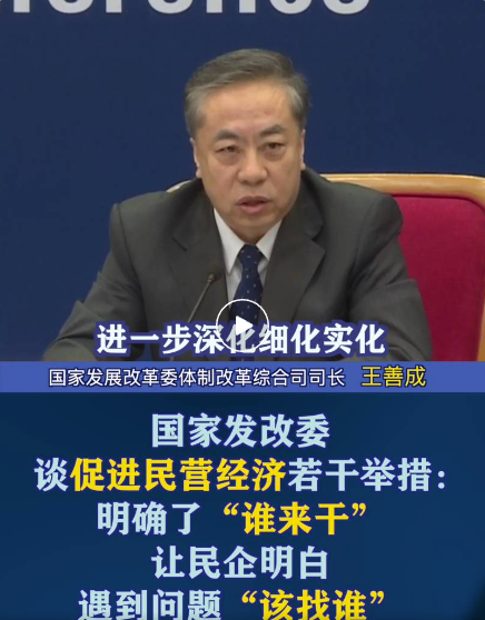 为把党中央、国务院的决策部署落到实处,切实推动民营经济高质量发展,国家发展改革委会同市场监管总局、税务总局等部门联合印发了《关于实施促进民营经济发展近期若干举措的通知》。8月1日上午,国家发展改革委举行新闻发布会,介绍有关情况。一起关注!