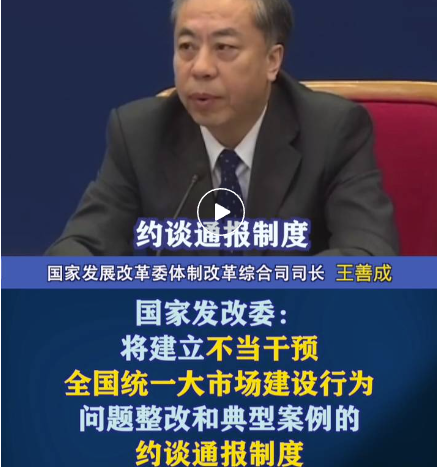 将建立不当干预全国统一大市场建设行为问题整改和典型案例的约谈通报制度中国政府网